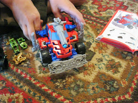 Just like with Lego's each robot came with the pieces in individually wrapped packages and it's own set of instructions with step by step pictures. There aren't really written instructions, which didn't slow down kiddo #2 at all, but might have been a little helpful for slower Mom trying to help younger brother...